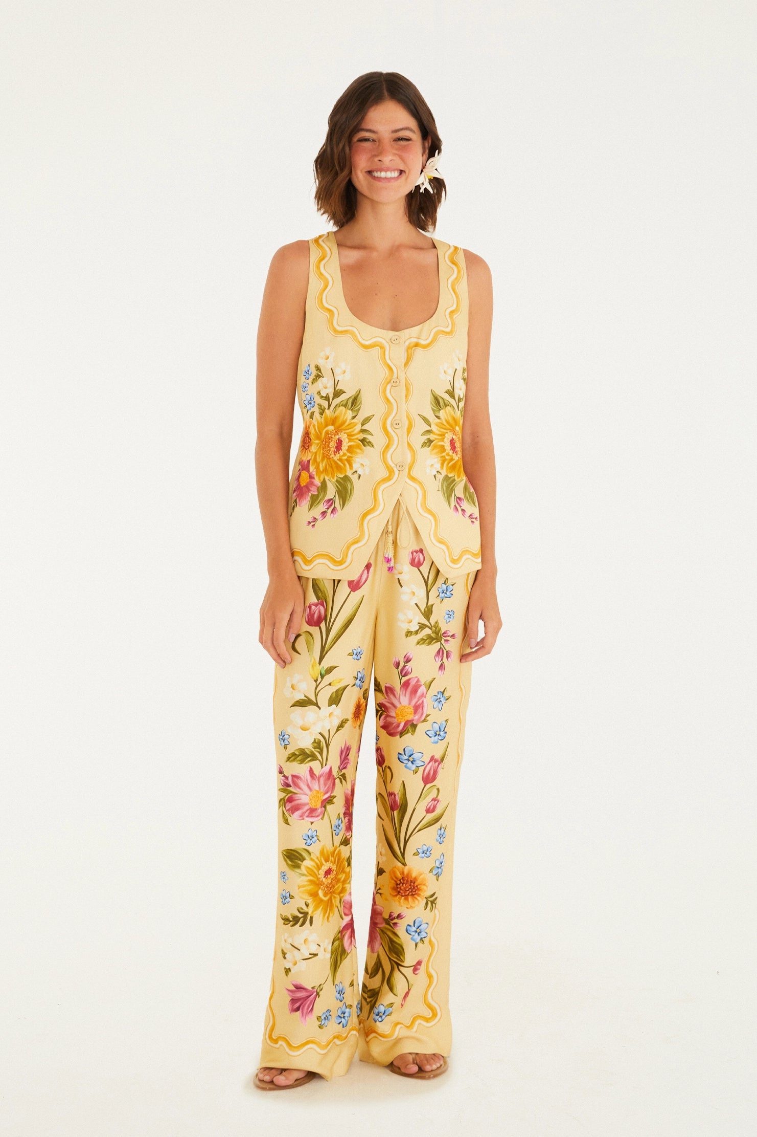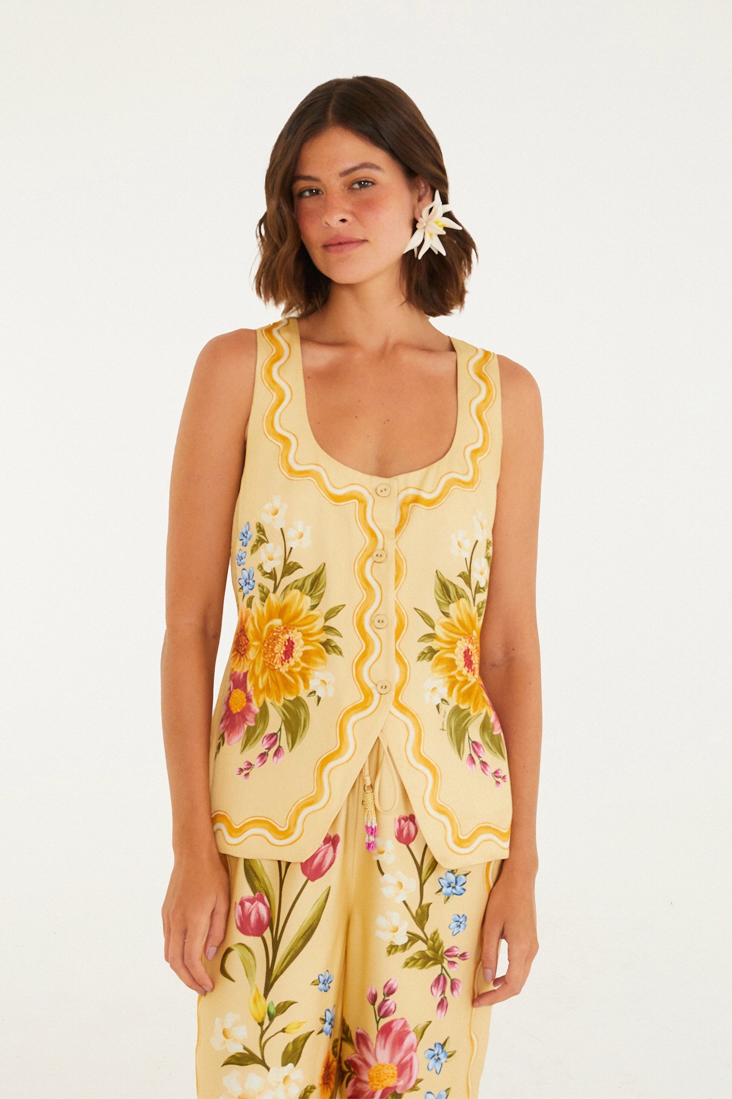 Chaleco Colete Floral Yellow