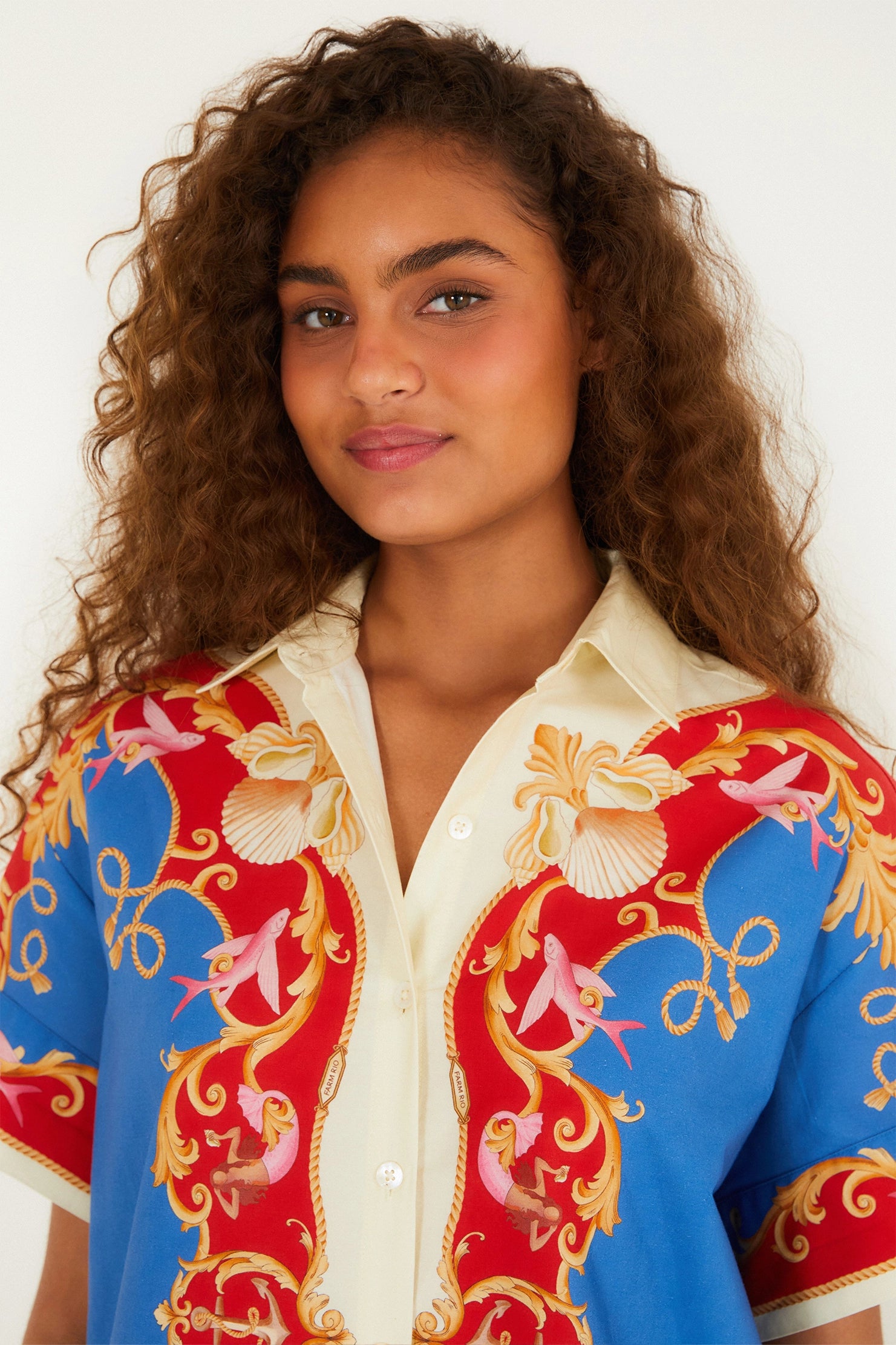 La camisa estampada «Realeza del Mar» es una prenda que realza cualquier guardarropa con su diseño único. De corte holgado y manga corta, es perfecta para los días de verano. Su cuello clásico y el botón central le dan un toque casual y elegante. Ideal para eventos al aire libre o un paseo relajado por la ciudad.