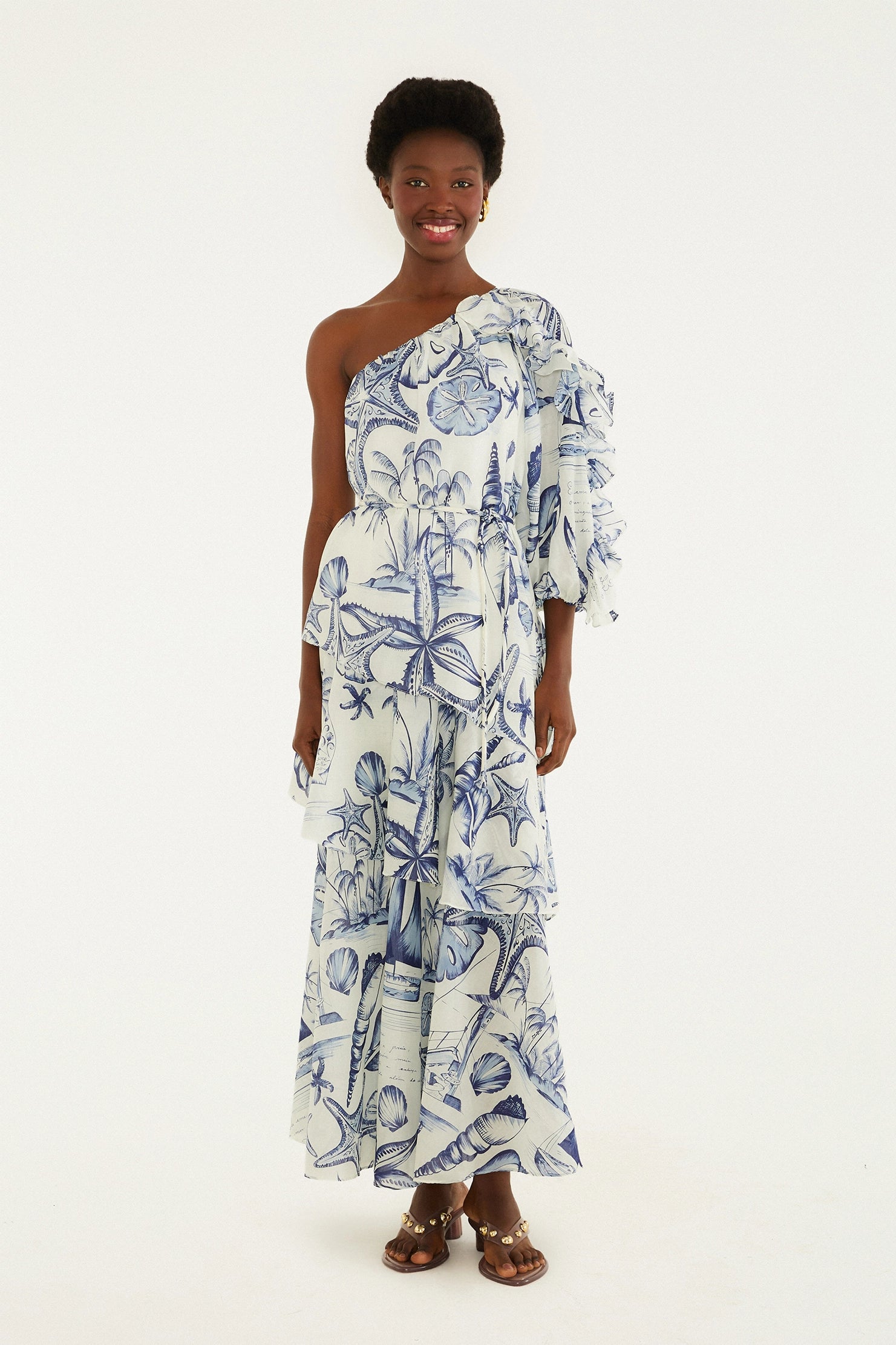 Vestido Babados Mar Beige